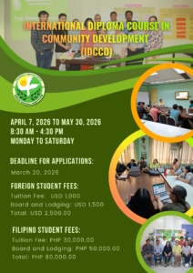 The course emphasizes holistic, integrative and participatory approaches to community development work toward sustainability in the context of the growing global concern about climate change. Part of the course is a seven-day community immersion program that will expose participants to rural-urban settings to complement the concepts and principles acquired during the course.